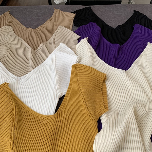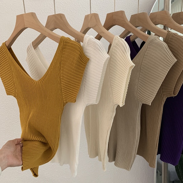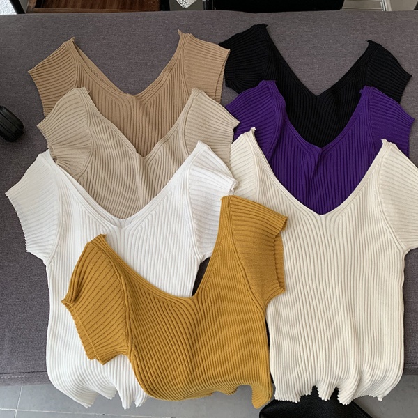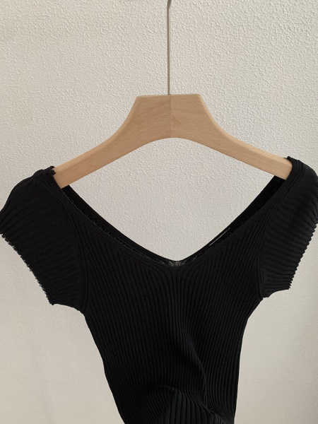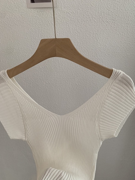 商品属性 [上市年份/季节] 2025夏季 [厚薄] 薄 [图案] 纯色 [工艺] 拼贴/拼接 [是否跨境货源] 否 [款式] 套头 [流行元素] 拼接 [版型] 修身型 [穿着方式] 套头 [组合形式] 单件 [衣长] 普通款(50cm<衣长≤65cm) [袖型] 常规袖 [袖长] 三分袖 [门襟] 套头 [面料名称] 冰爽 [领型] V字领 [风格] 纯欲风 [风格类型] 私服名媛