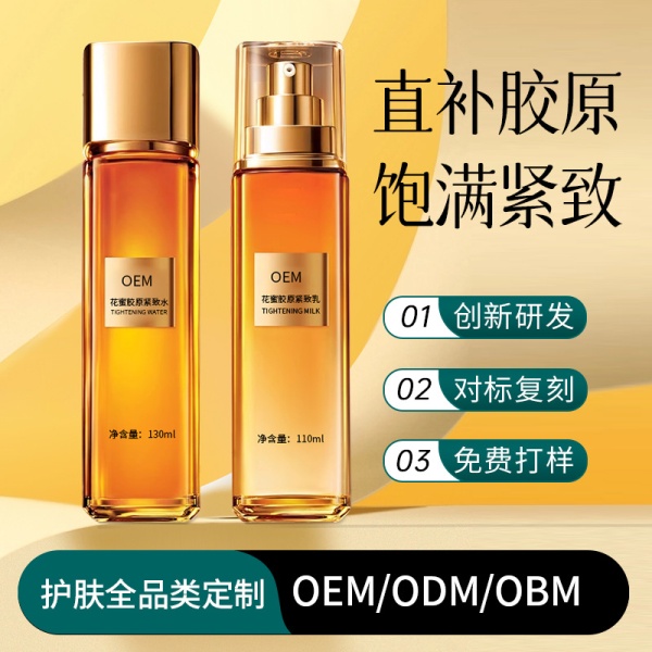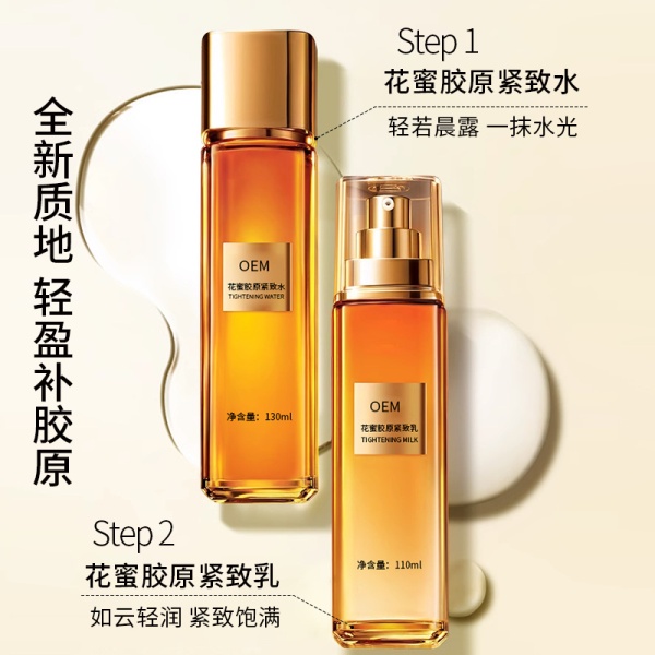 商品属性 [产品名称] 水乳套盒 [产地] 广州 [保质期] 3年 [化妆品功效] 控油,补水保湿,提亮肤色,晒后修护,滋润,紧致,舒缓肌肤,柔润肌肤 [品牌类型] OEM [是否跨境出口专供货源] 否 [是否进口] 否 [特妆产品名称] 胶原水乳套盒 [特殊用途化妆品] 否 [生产许可证号] 粤妆20220015 [适用人群] 女士,男士 [适用肤质] 通用 [非特化妆品备案证号] 粤G妆网备字2022129114