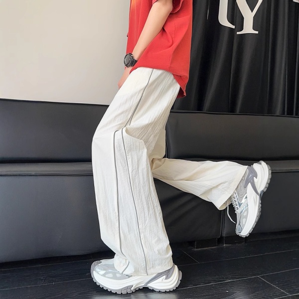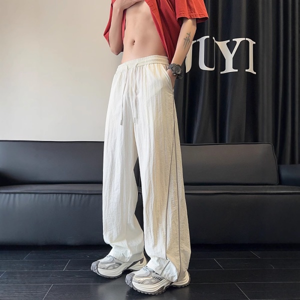 商品属性 [上市年份/季节] 2025夏季 [主要下游平台] ebay,亚马逊,wish,速卖通,独立站,LAZADA [主要销售地区] 非洲,欧洲,南美,东南亚,北美,东北亚,中东 [主面料成分] 聚酯纤维(涤纶) [主面料成分的含量] 100 [厚薄] 薄款 [原创设计货源] 是 [图案] 纯色 [工艺] 免烫处理 [弹力] 微弹 [是否有腰带] 有腰带 [是否跨境出口专供货源] 是 [有可授权的自有品牌] 是 [有无质检报告] 否 [材质功能] 免烫 [款式] 基本款 [款式细节] 辑明线 [淘货类别] 青春流行(18-24岁) [类别] 运动休闲裤 [腰型] 中腰 [裤型] 宽松型 [裤脚口款式] 直筒 [裤长] 长裤 [裤门襟] 系绳闭襟 [误差范围] 无误差 [货源类别] 现货 [质检报告编号] 8 [适合人群] 青少年 [适合季节] 夏季 [适用场景] 日常 [面料] 弹力面料 [面料名称] 化纤类混纺 [风格] 港风