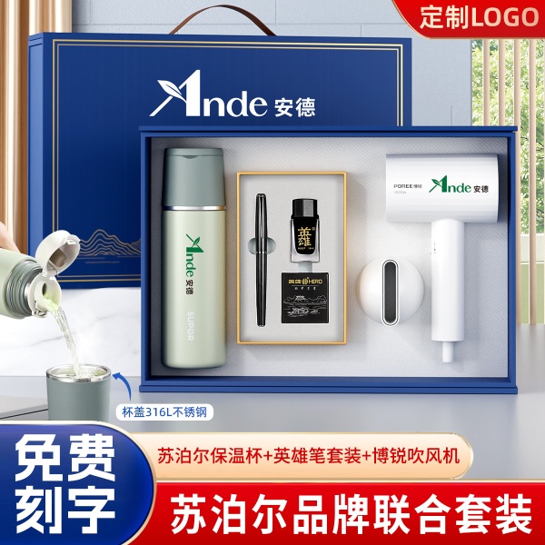 建军节礼物苏泊尔值保温杯英雄笔套装印制logo商务礼品套装伴手礼