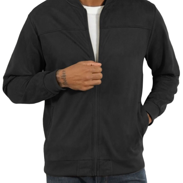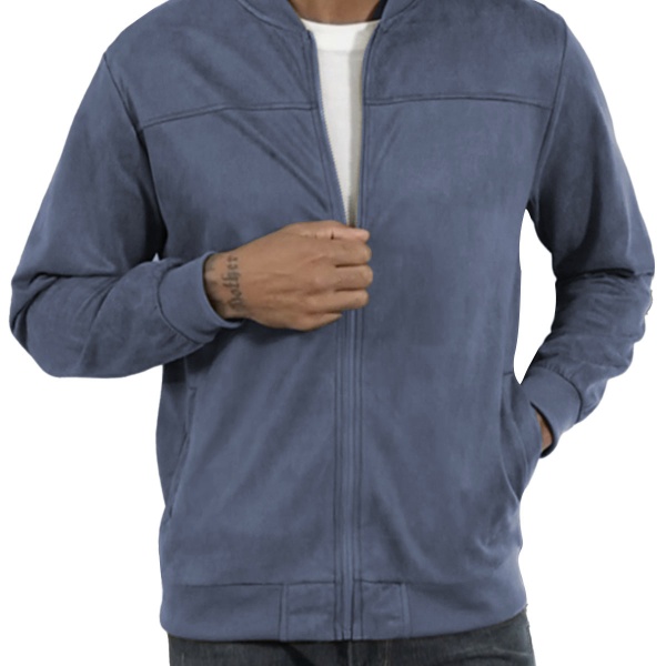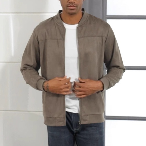 2025跨境亚马逊春秋季麂皮绒纯色男装拉链夹克休闲复古长袖夹克衫