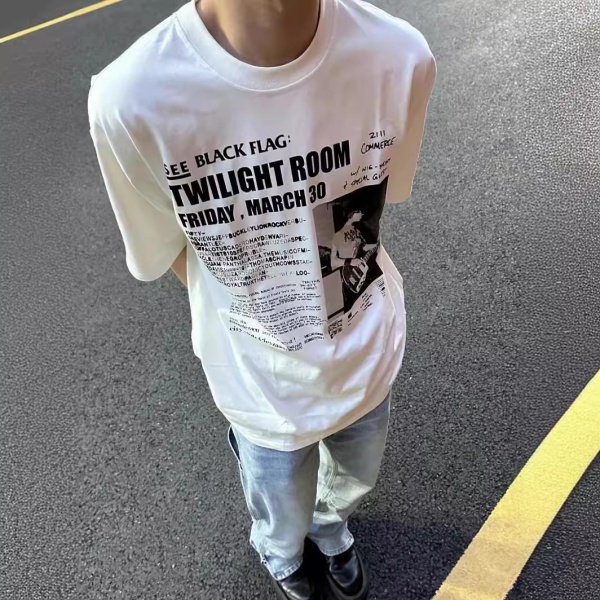 商品属性 [上市年份/季节] 2024年春季 [主面料成分] 棉 [主面料成分的含量] 96%及以上 [克重] 300 [印花主题] 人物图案 [厚薄] 普通 [原创设计货源] 否 [图案] 字母 [工艺] 数码印花 [库存类型] 整单 [是否库存] 是 [是否跨境出口专供货源] 否 [是否连帽] 不连帽 [有无质检报告] 否 [材质功能] 其他 [款式] 套头 [款式细节] 印花 [淘货类别] 青春流行(18-24岁) [版型] 宽松型 [类别] T恤背心 [袖型] 常规 [袖长] 短袖 [误差范围] 1 [货源类别] 现货 [适合人群] 青年 [适合季节] 夏季,春季 [适用场景] 休闲 [面料名称] 纯棉 [领型] 圆领 [风格] 青春流行