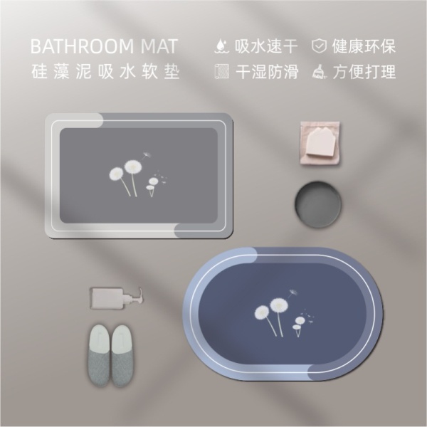 硅藻泥软垫吸水浴室轻奢地垫卫生间门口地毯卫浴厕所防滑地毯脚垫