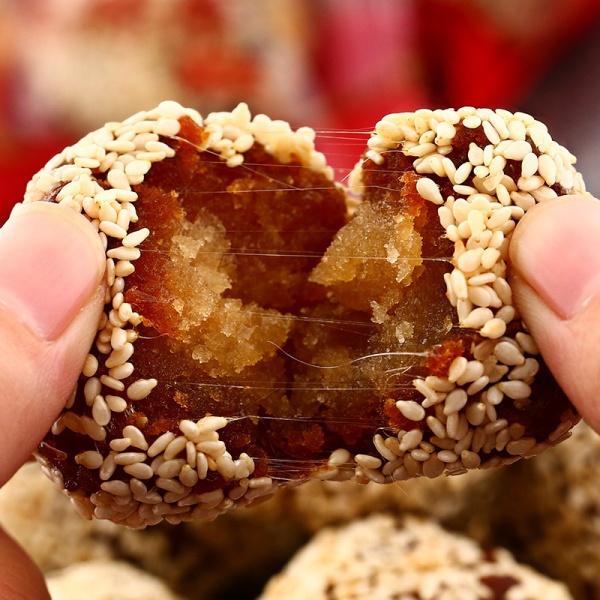 闻喜煮饼是一种山西省的地方传统名点,正宗闻喜煮饼多产于山西省运城市闻喜县,在山西有着饼点之王的美誉,又有国式糕点绝产之美称。在晋南民间把“炸”就叫“煮”。闻喜煮饼形似圆月,由于外皮粘满白芝麻,所以外观是月白色。其外裹芝麻,滚圆状,内有栗色、绛白二色分明的饼馅,可拉出几厘米长的细丝,吃起来酥沙香甜、不皮不粘不腻。相传康熙皇帝巡行路径闻喜时,闻喜官绅为迎接圣驾,遍选名师治宴。席间,皇上觉得其他肴馔都淡而无味,唯有煮饼滋味独特,余味绵长,不禁喜问其名。众官宦搜索枯肠,都想取一个吉利的名称来讨皇上高兴,但因皇上猝然发问,不免一时语塞,无言以对。皇上见此情状不觉笑说:就叫煮饼吧。于是康熙皇帝命名的闻喜煮饼就此名声大燥并流传至今。