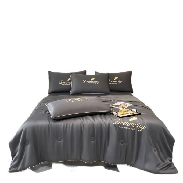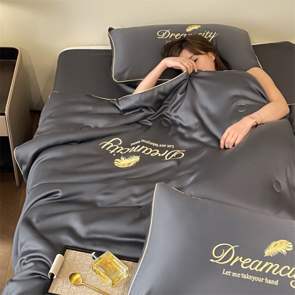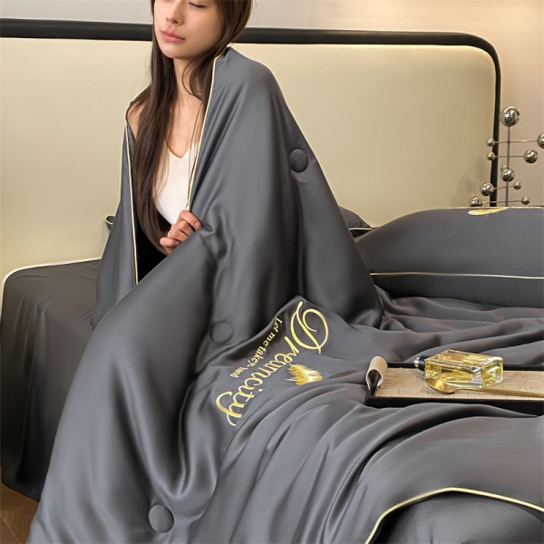 轻奢风水洗真丝冰丝刺绣天丝夏凉被三件套四件套空调被-滚边款