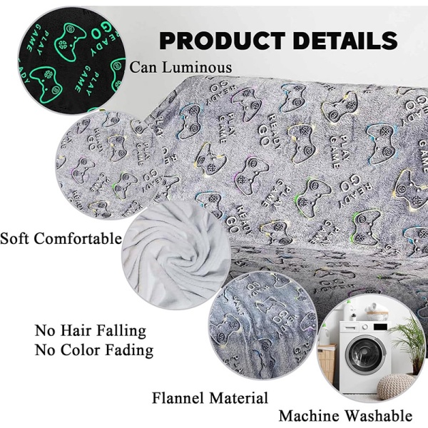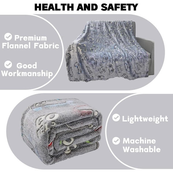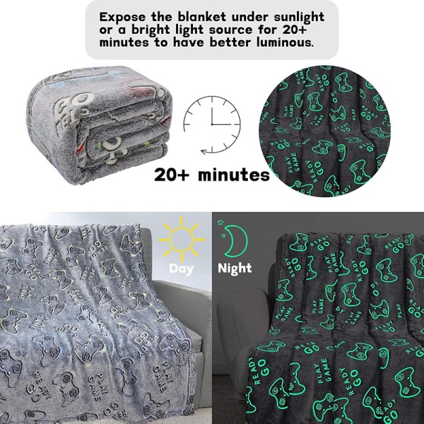 跨境一件代发儿童游戏机手柄夜光毯子法兰绒毯卡通空调被灰色毛毯