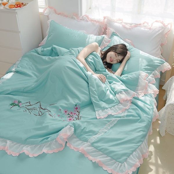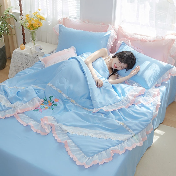 空调被夏凉被四件套冰丝夏季公主风可爱少女单双人真天水机洗透气
