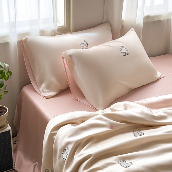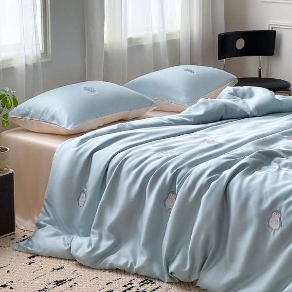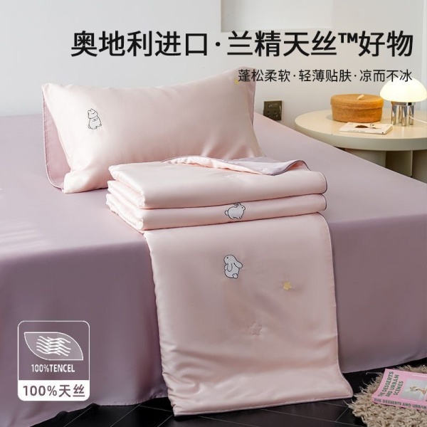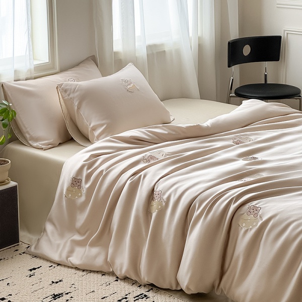 高奢A类100兰精天丝刺绣夏被床单四件套丝滑凉感夏被宿舍空调被子