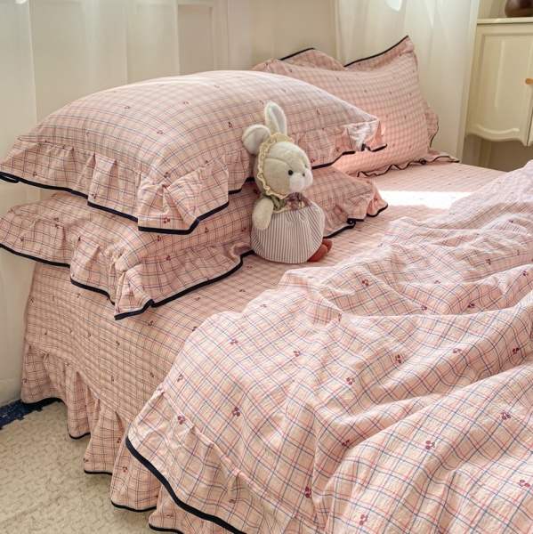 new韩版花边ins夏凉被四件套空调被薄四季通用可机洗不起球