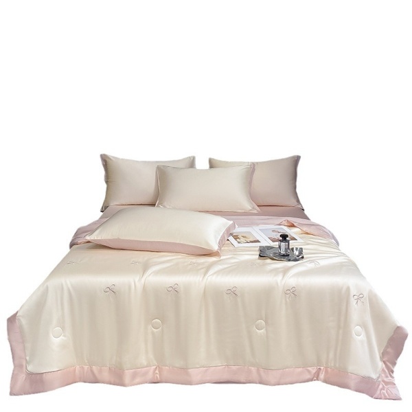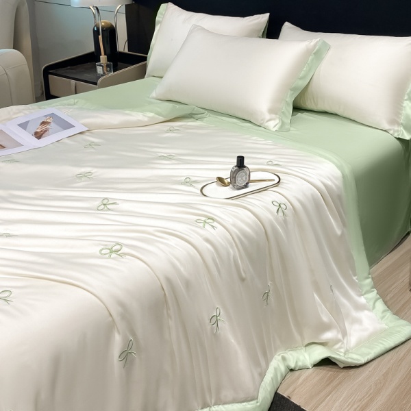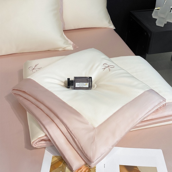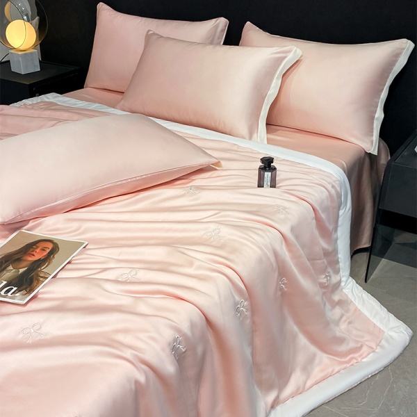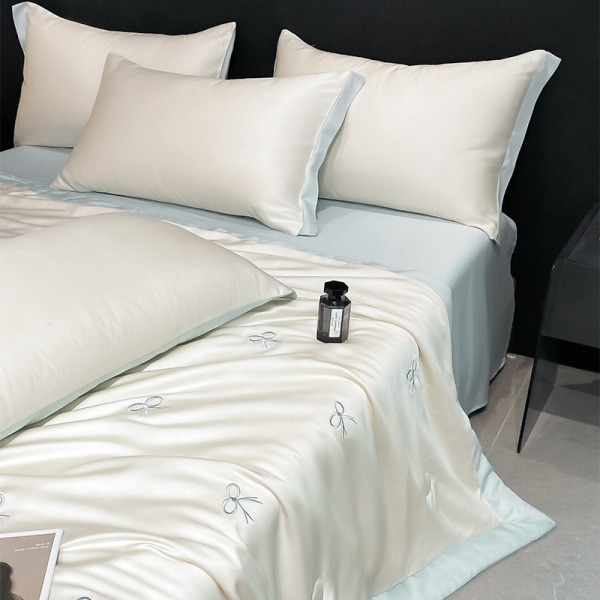 水洗冰丝夏被四件套轻奢ins风刺绣夏凉被三件套空调被凉感批发