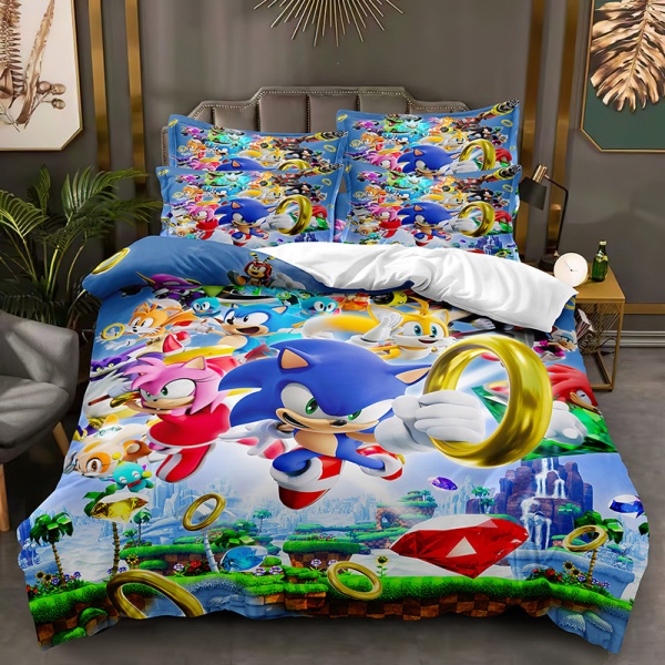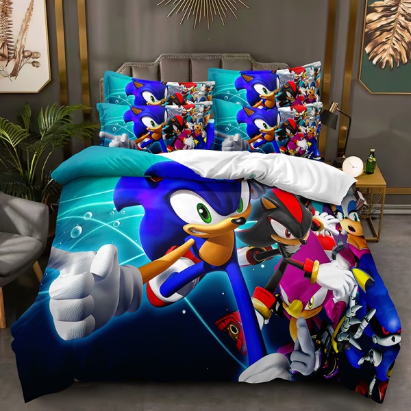 跨境家纺亚马逊速卖通电音小子索尼克三件套床品数码印花被套套件