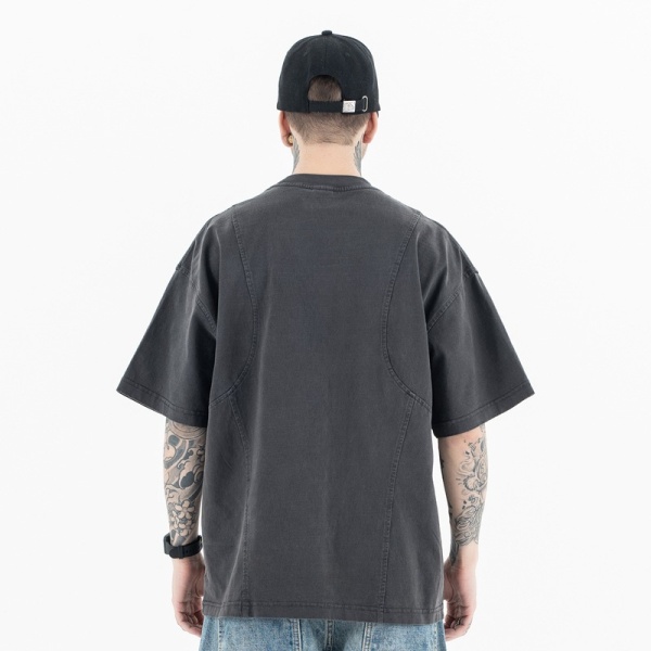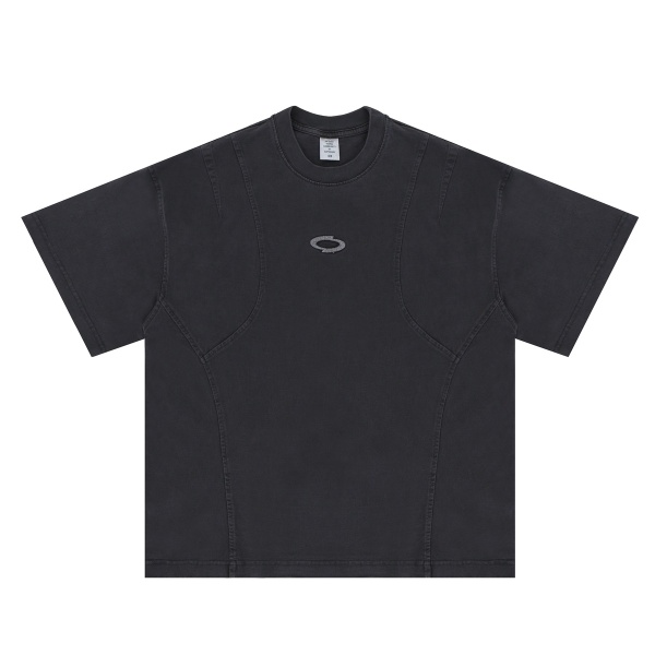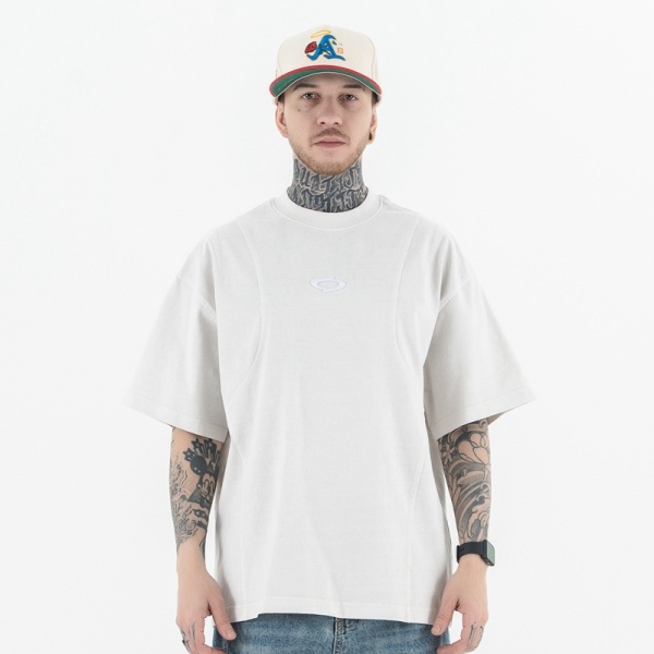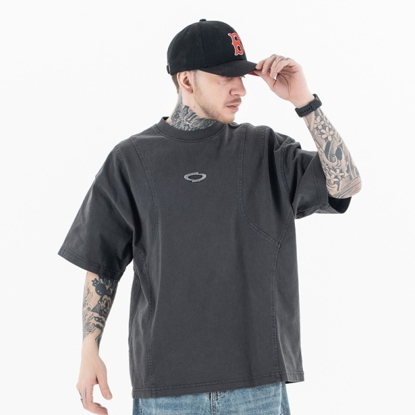 澜海男装2025春夏新品潮牌美式小logo刺绣洗水纯色百搭短袖T恤男