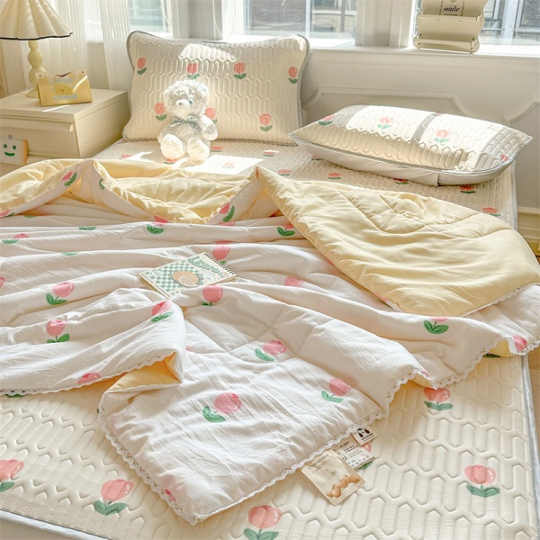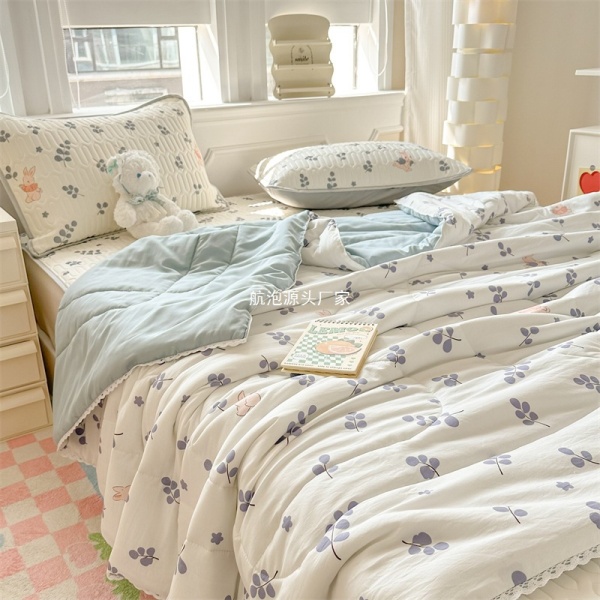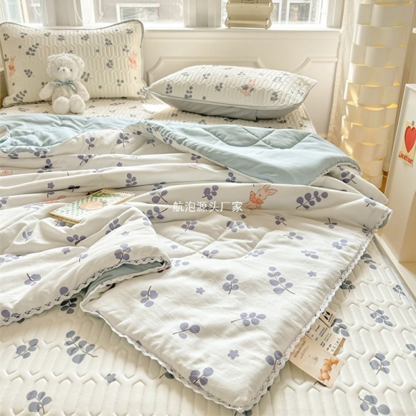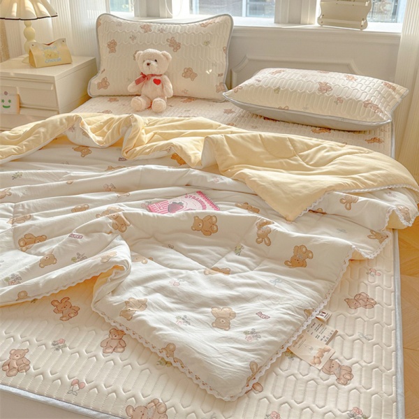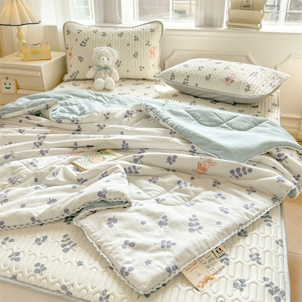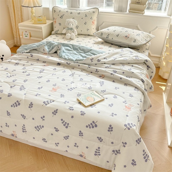 水洗棉空调被四件套冰丝乳胶凉席夏凉被可水洗床单被套床上三件套
