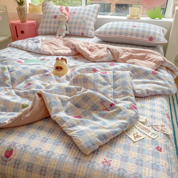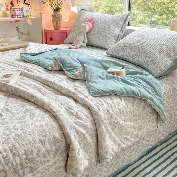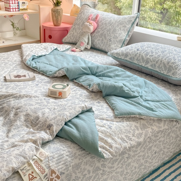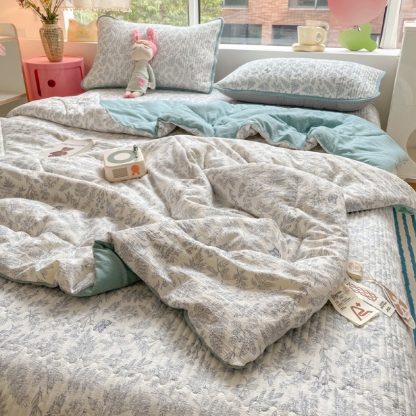 新款抗菌超柔云感双层纱印花床盖夏被四件套家用夏凉被舒爽空调被