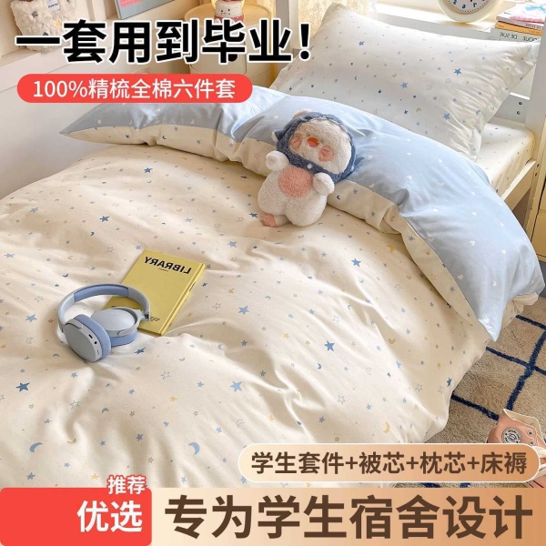 大学生宿舍纯棉三件套床上用品全棉床单被子罩床垫六件套拎包入住