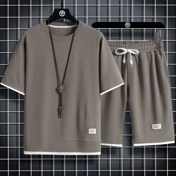 2025短袖运动套装男士夏季时尚休闲衬衣男t恤短裤套装两件套