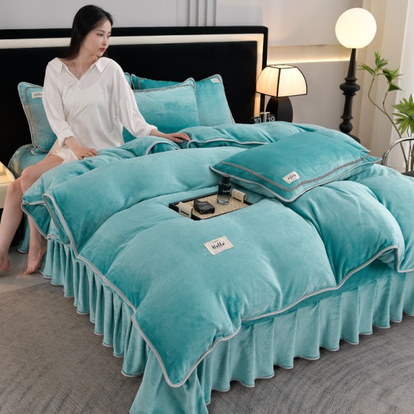 商品属性 [克重] 500g(不含)以下 [加工定制] 是 [印染工艺] 活性印染 [图案] 纯色,其他/other,植物花卉 [是否一般纳税人] 是 [材质] 牛奶绒 [款式] 床裙式 [织造工艺] 斜纹 [风格] 现代简约
