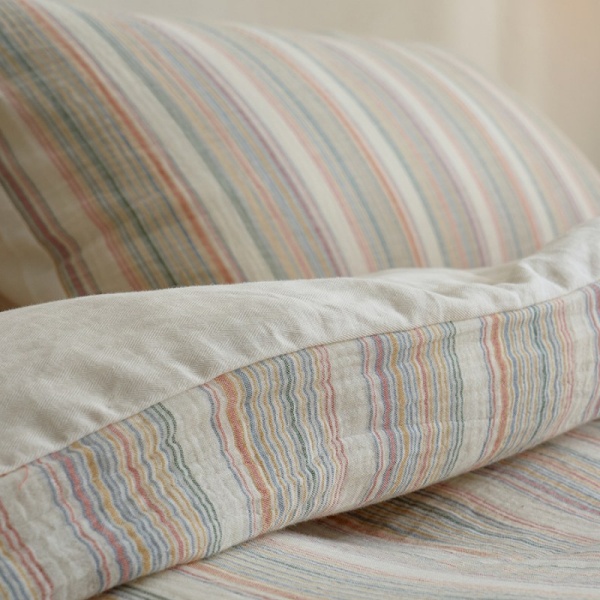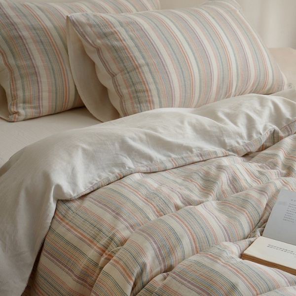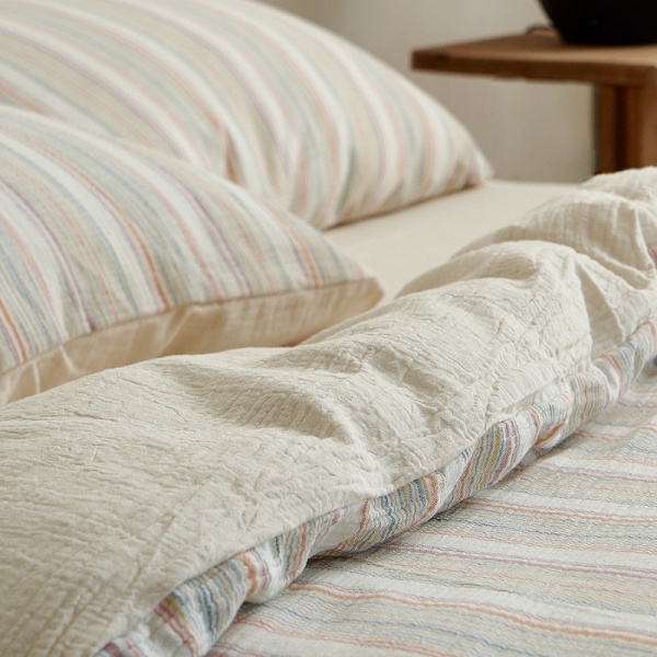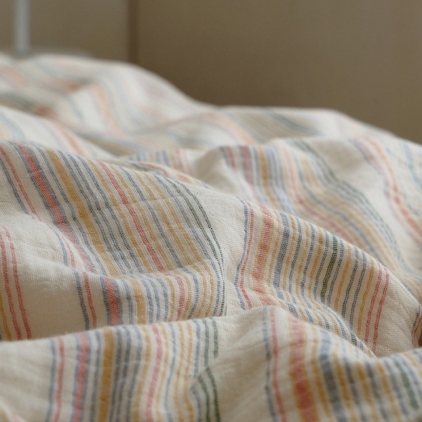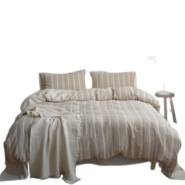 ins风彩色条纹色织提花全棉双层纱四季裸睡床上用品纯棉被套床单