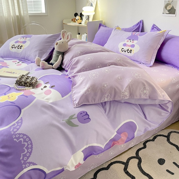 床上用品四件套磨毛被套亲肤芦荟棉床单被罩大学生宿舍三件套被单