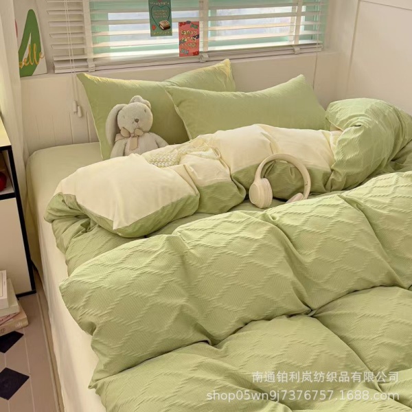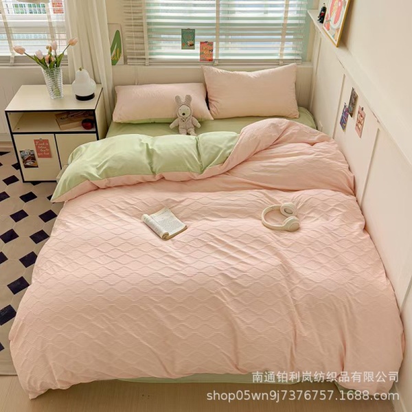 新品亲肤柔软时尚雕花四件套全棉水洗棉套件床单床笠学生宿舍床品大量现货速发