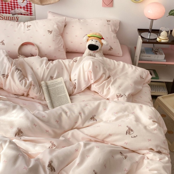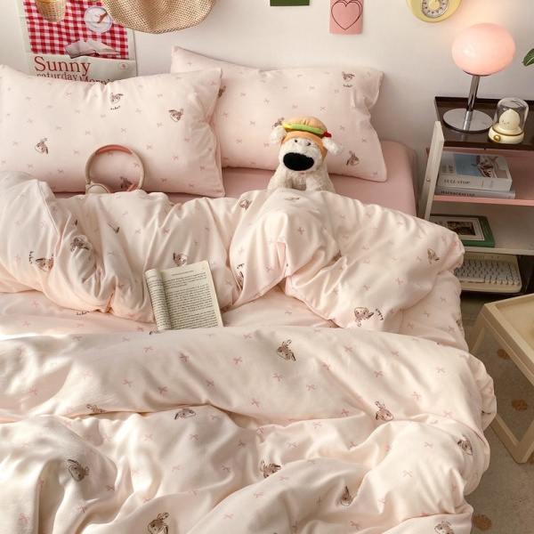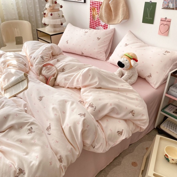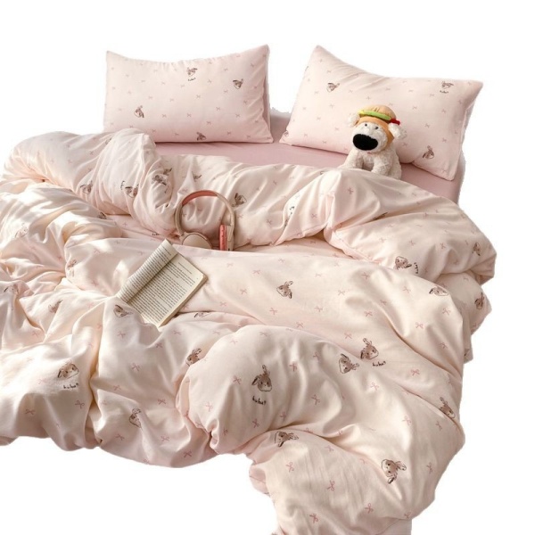 a类针织棉双层纱四件套纯棉被套床单床上用品学生宿舍三件套批发