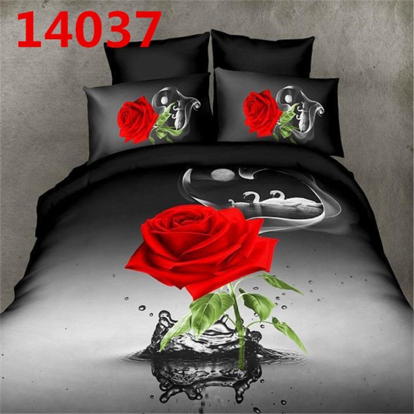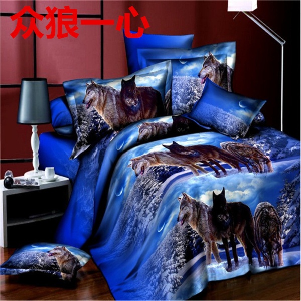外贸直发磨毛3d四件套 印花玫瑰被单批发 老虎床单式跨境床上用品