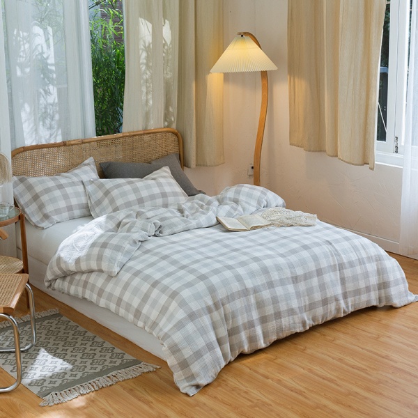 日本进口加棉全棉三层纱被套被单裸睡舒适四件套春秋简约床上用品