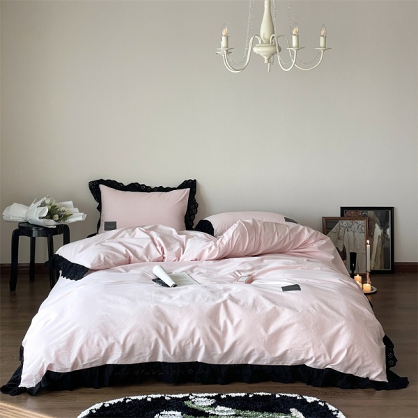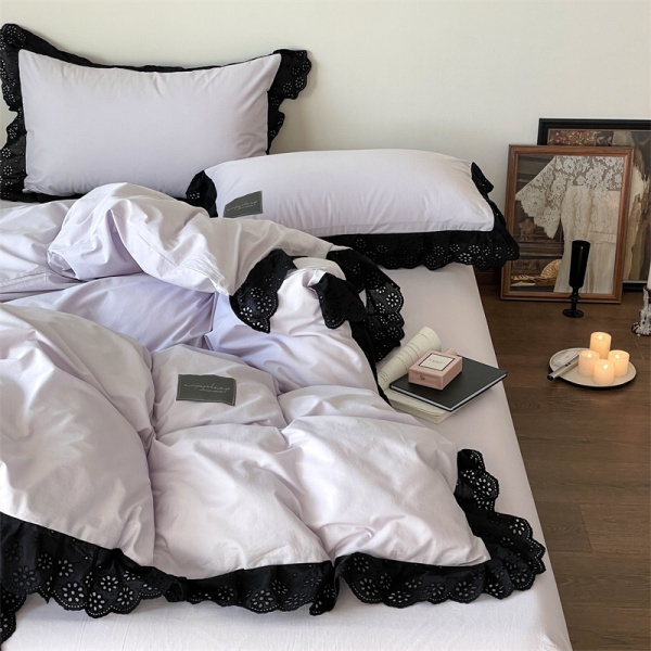 法式高定浪漫镂空花边四件套全棉纯棉被套公主风1.8m双人床上用品