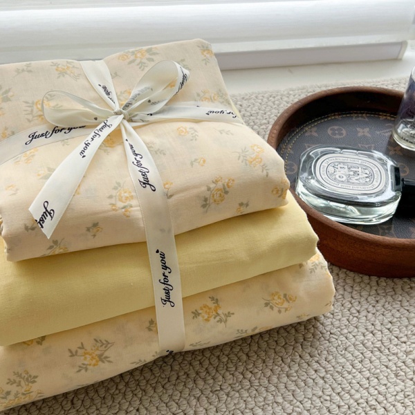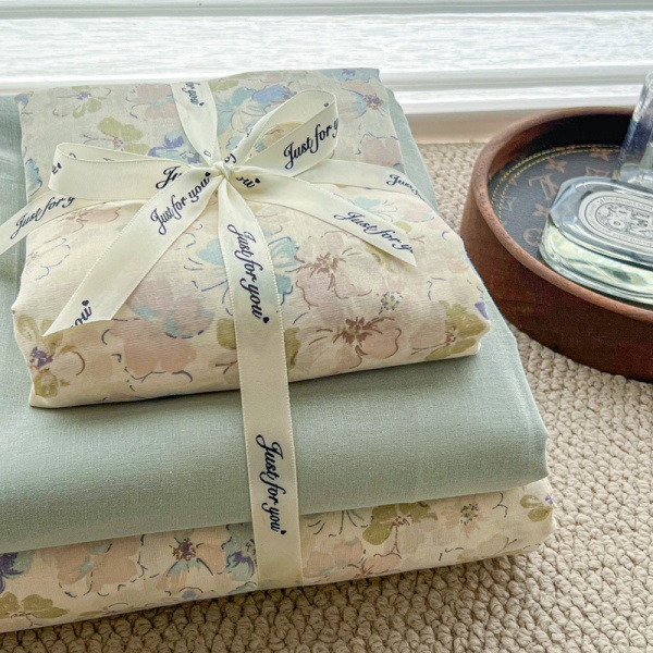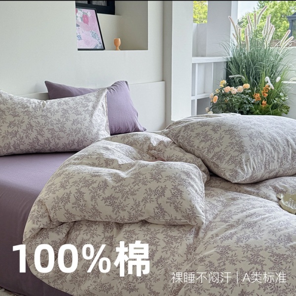 A类全棉有氧双层纱床上四件套纯棉被套床单三件套ins床上用品套件