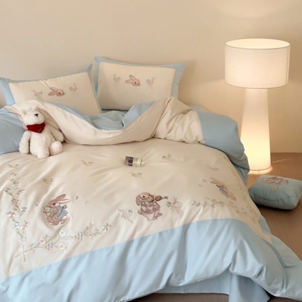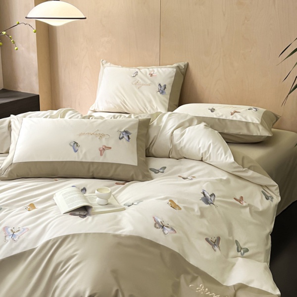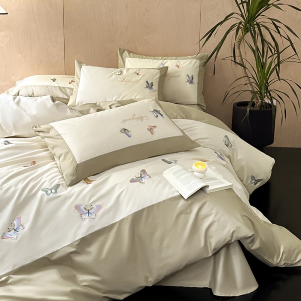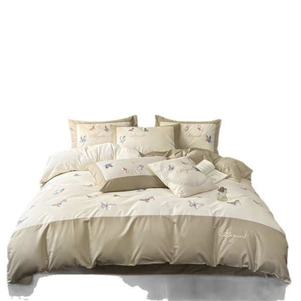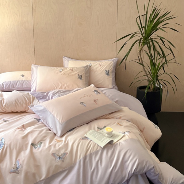 A类公主风全棉水洗棉四件套高精密蝴蝶刺绣纯棉被套床单床上用品4