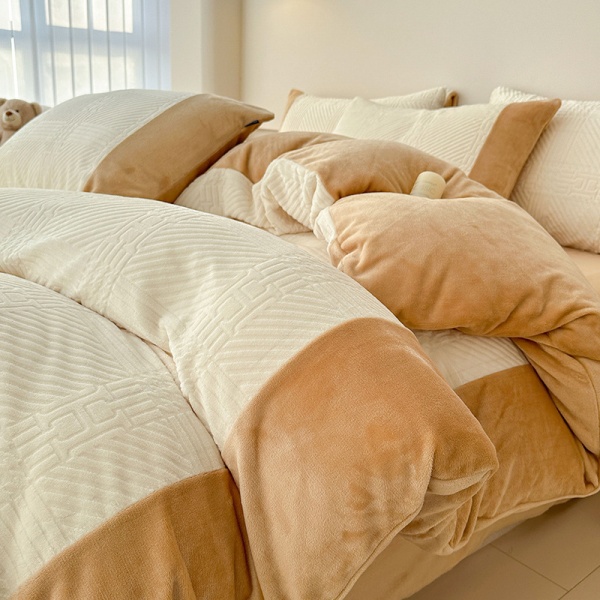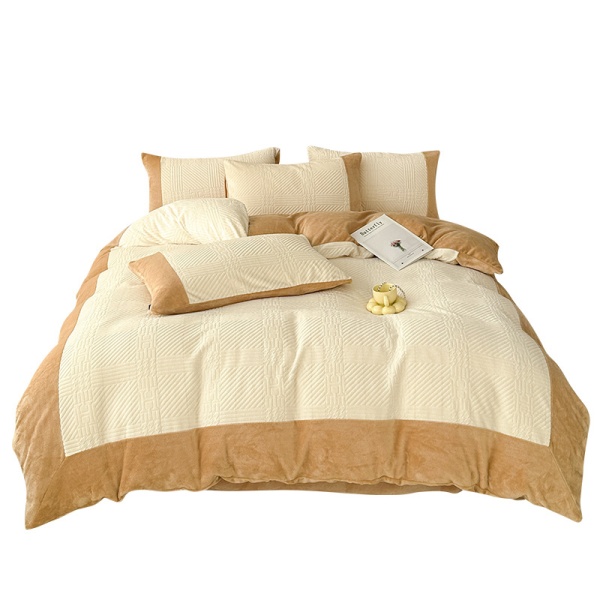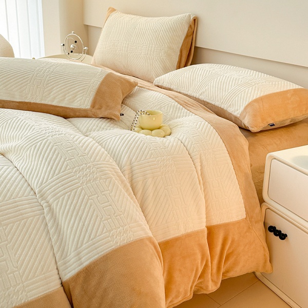 商品属性 [克重] 500g(不含)以下 [加工定制] 否 [印染工艺] 活性印染 [图案] 纯色 [是否一般纳税人] 否 [材质] 牛奶绒 [款式] 床单式 [织造工艺] 包边,印花,斜纹,绗缝 [风格] ins风