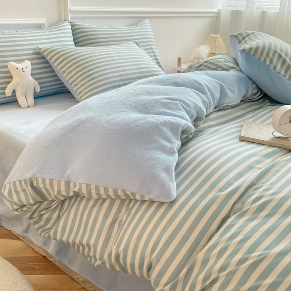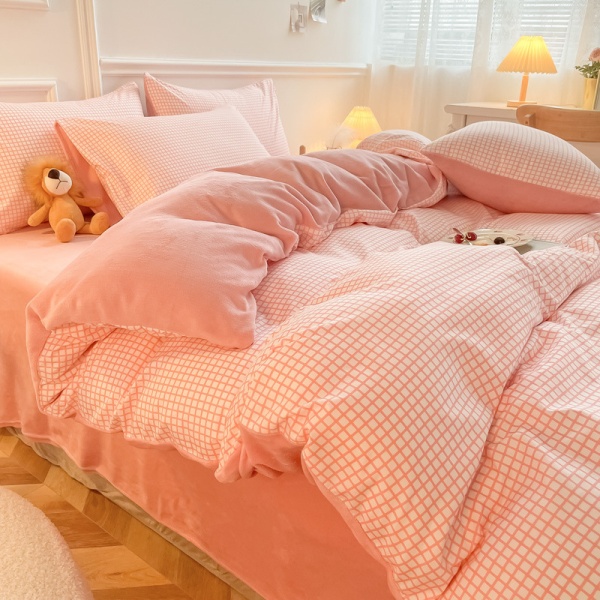 冬季牛奶绒四件套批发日式水洗棉床单被套加厚珊瑚绒床上用品南通
