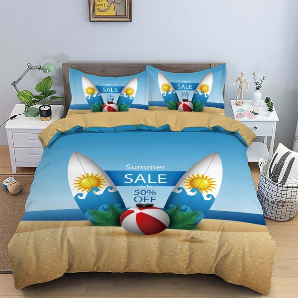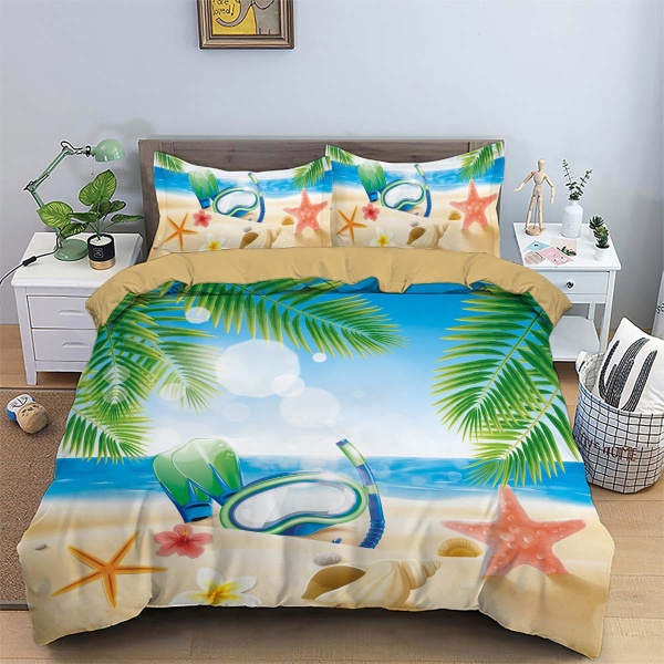 跨境床上三件套定制90磨毛布数码印花夏威夷沙滩被套枕套代发厂家