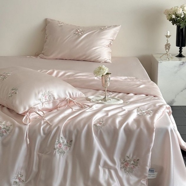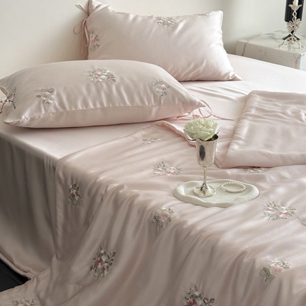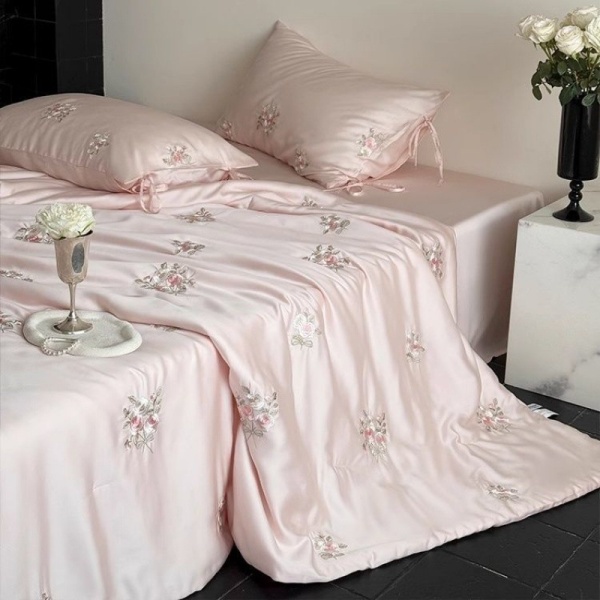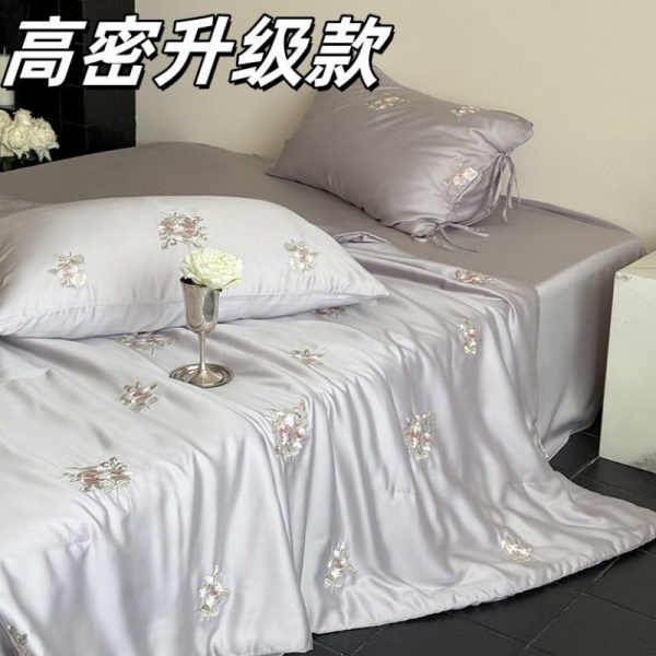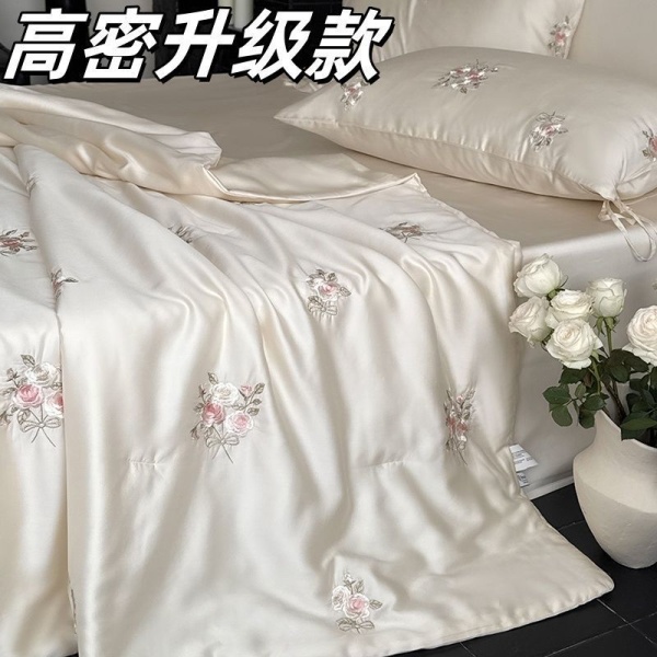 少女心80支兰精天丝夏凉被四件套冰丝刺绣凉感空调被夏被床品