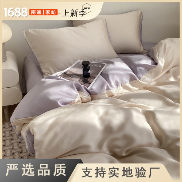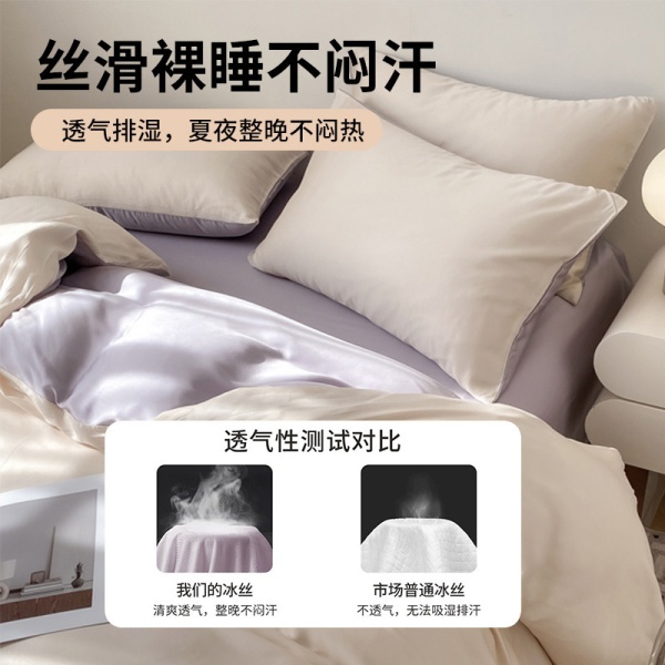 2025夏季纯色冰丝四件套a类凉感床单被套宿舍三件套南通床上用品4