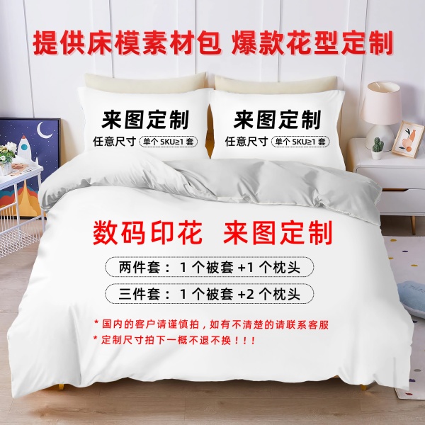 3D数码印花三件套 跨境被套枕套床单 外贸床上用品来图定 制