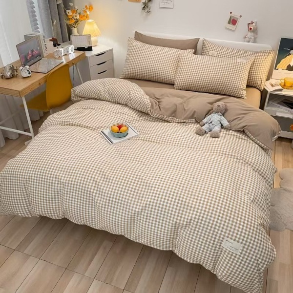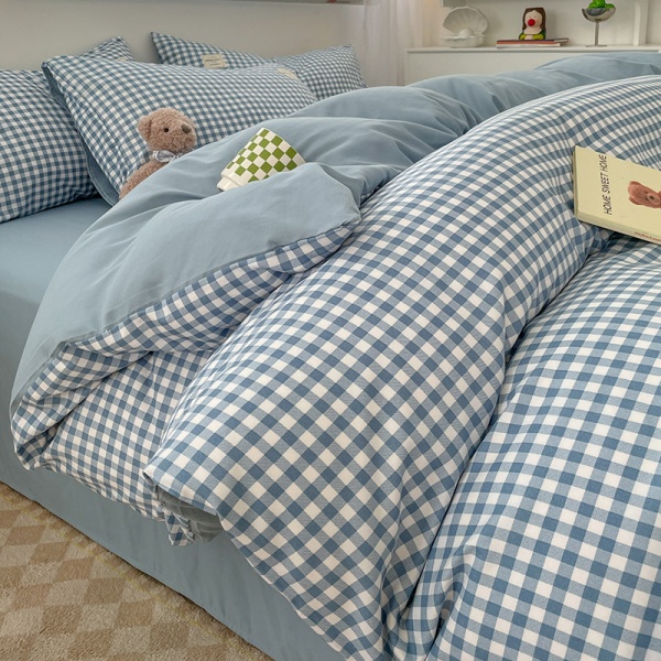 ins风格子纯棉四件套A类母婴级裸睡款床单被套纯色床上用品三件套