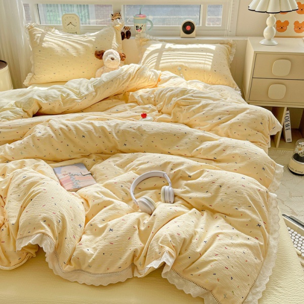 商品属性 [克重] 1000g(含)~1500g(不含) [加工定制] 是 [印染工艺] 活性印染 [图案] 几何图案,卡通动漫,植物花卉 [是否一般纳税人] 否 [材质] 纯棉 [款式] 床单式 [织造工艺] 印花 [面料支数] 60支 [风格] ins风