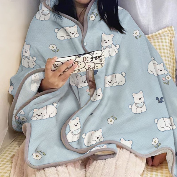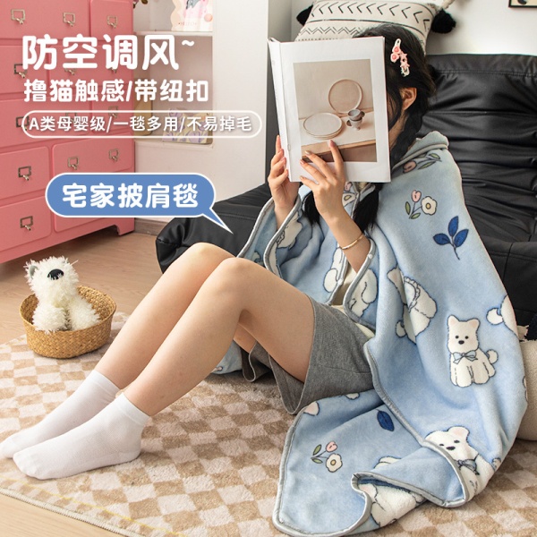 披肩空调毯印花毯办公室午睡毯二合一盖腿便携披肩沙发空调绒毛毯