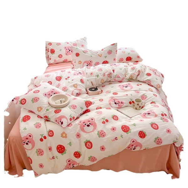 A类母婴超柔四件套皱皱棉水洗棉宿舍双人被套学生床单三件套