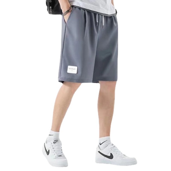 冰丝皮标短裤男士夏季薄款裤子外穿休闲五分裤沙滩运动宽松大裤衩