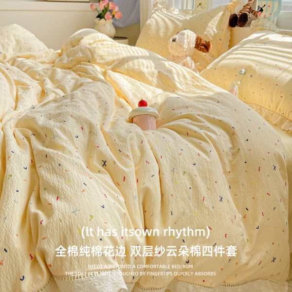 a类床上四件套纯棉全棉四季被罩床单被套床品宿舍学生三件套床笠4