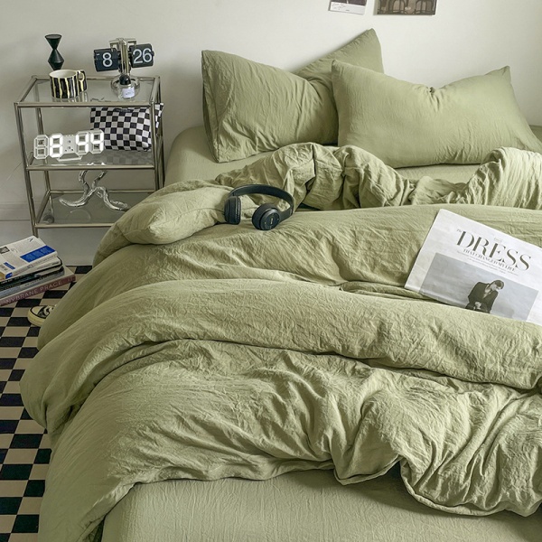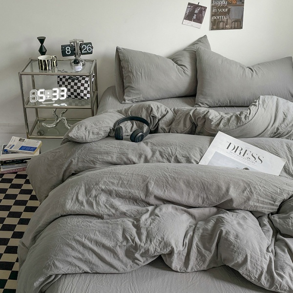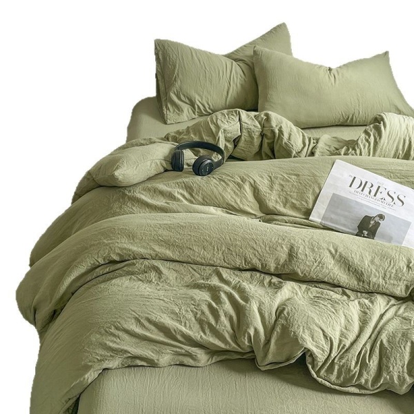 ins纯色A类母婴级水洗棉床上四件套可裸睡床单被套床笠学生三件套