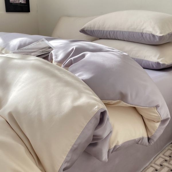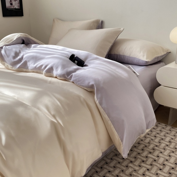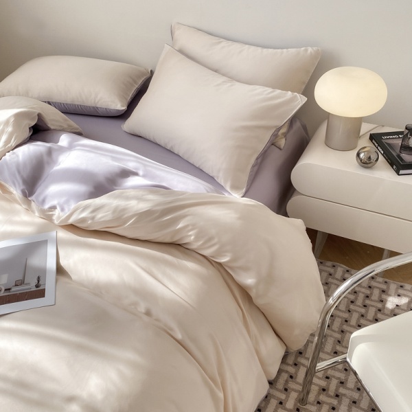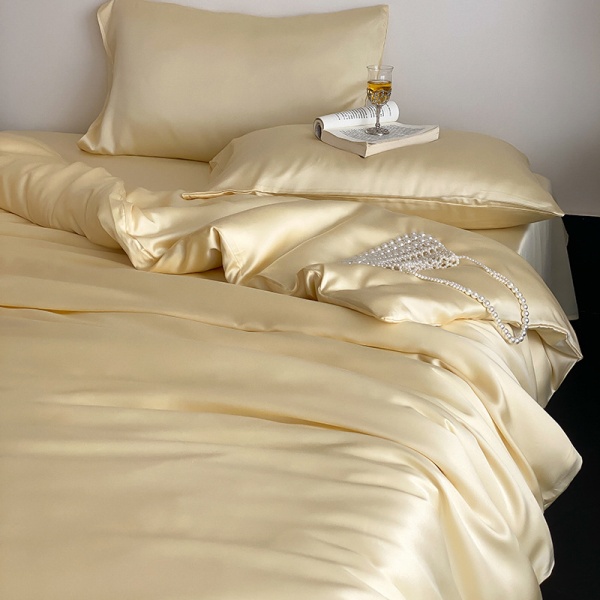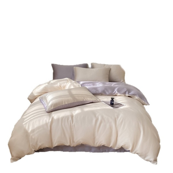 夏季冰丝床上四件套夏天丝滑被套裸睡床单水洗纯色宿舍三件套床品