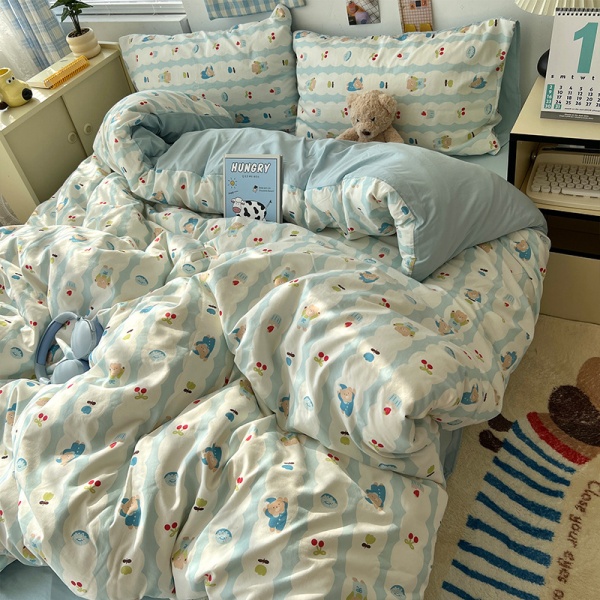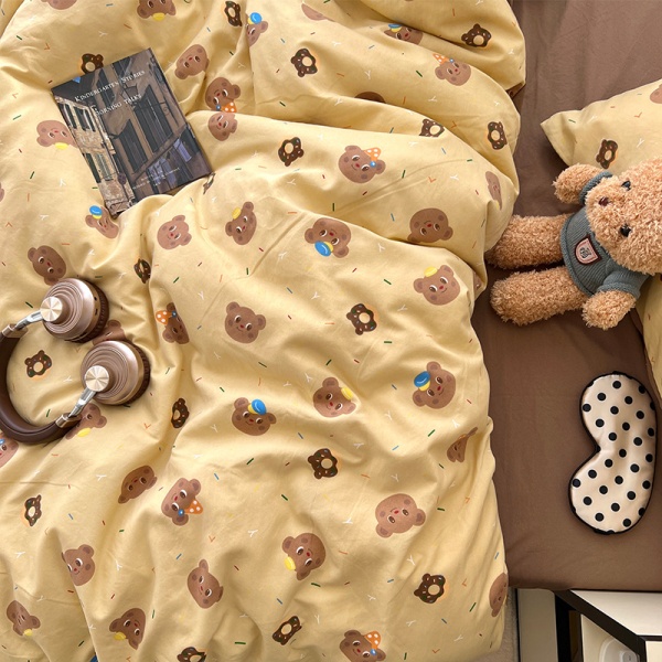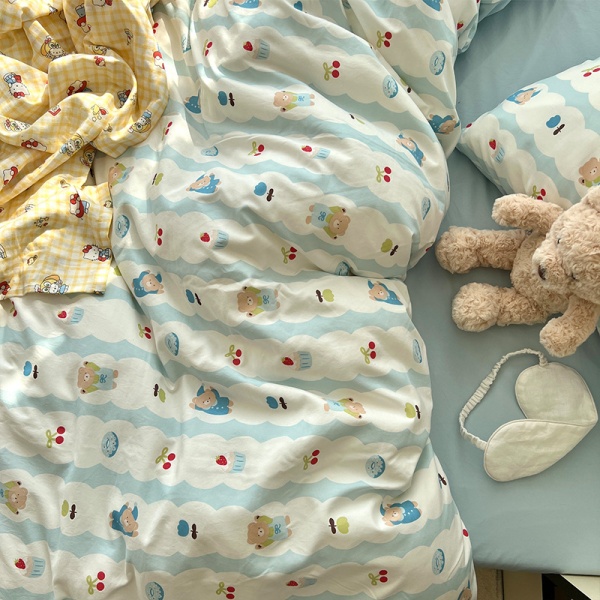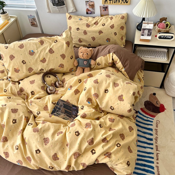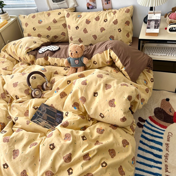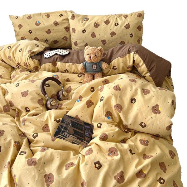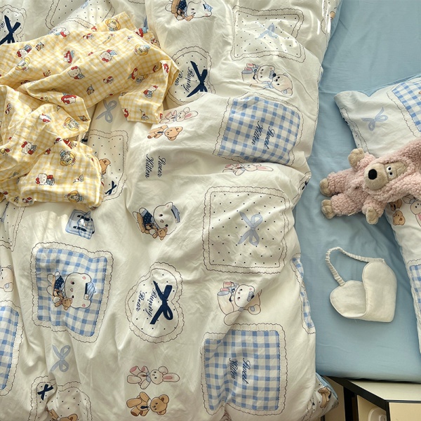 2025春夏款柔软亲肤水洗棉四件套学生宿舍卡通小熊被套床单三件套