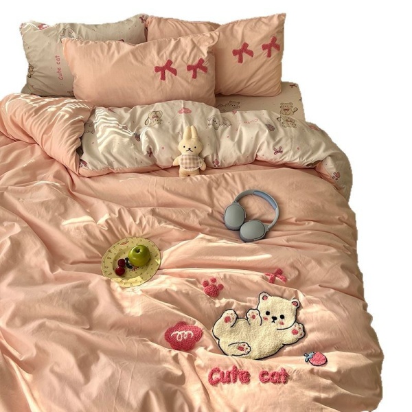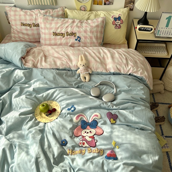 A类母婴级床上用品四件套纯棉水洗棉床单被套床笠学生宿舍三件套