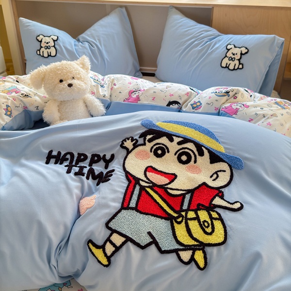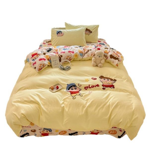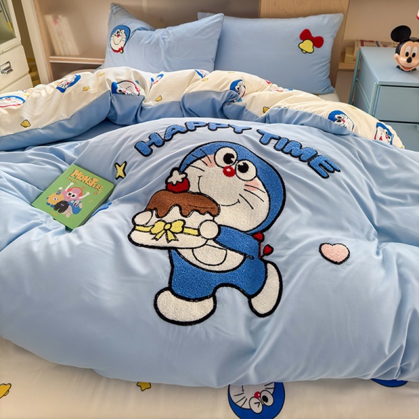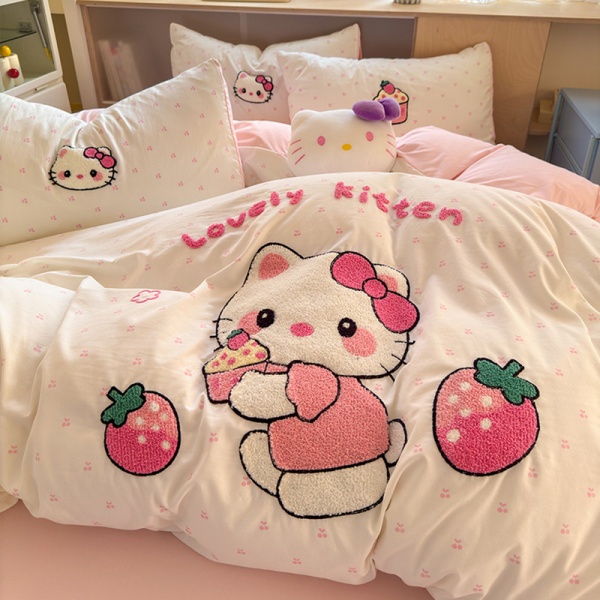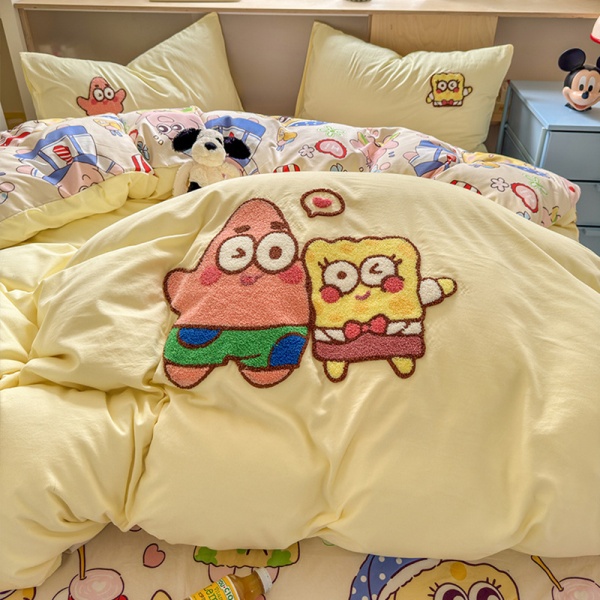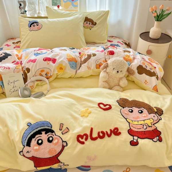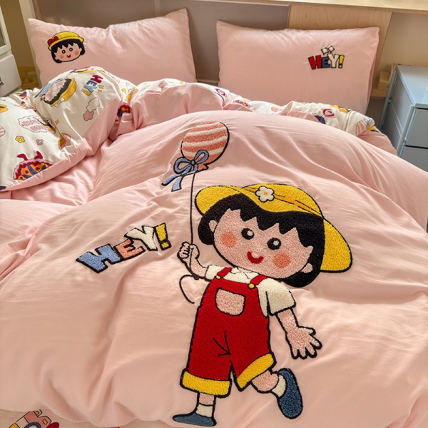 A类ins风超柔云朵棉毛巾绣四件套少女心全棉被套大学生宿舍三件套