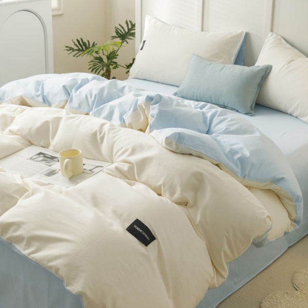 全棉水洗棉四件套 100纯棉被套床单学生宿舍150x200被罩床笠床品3