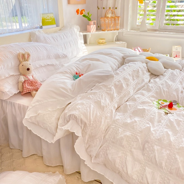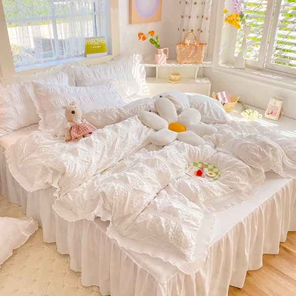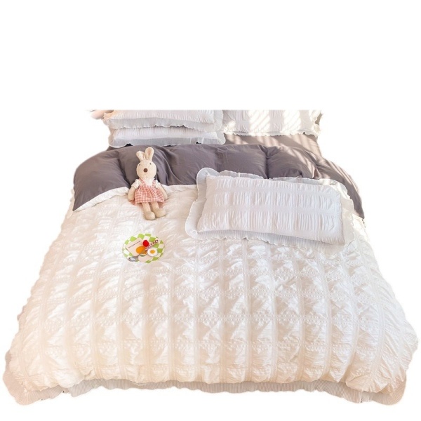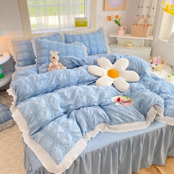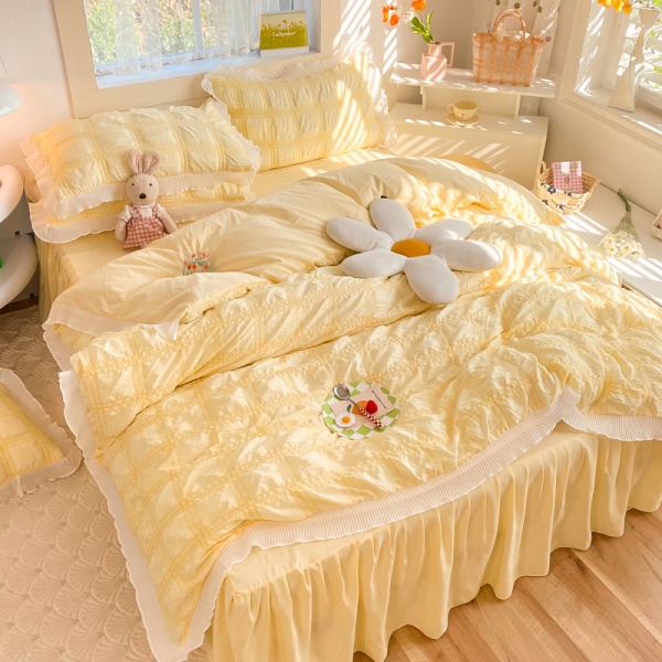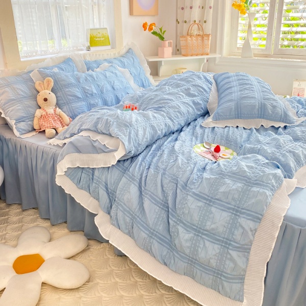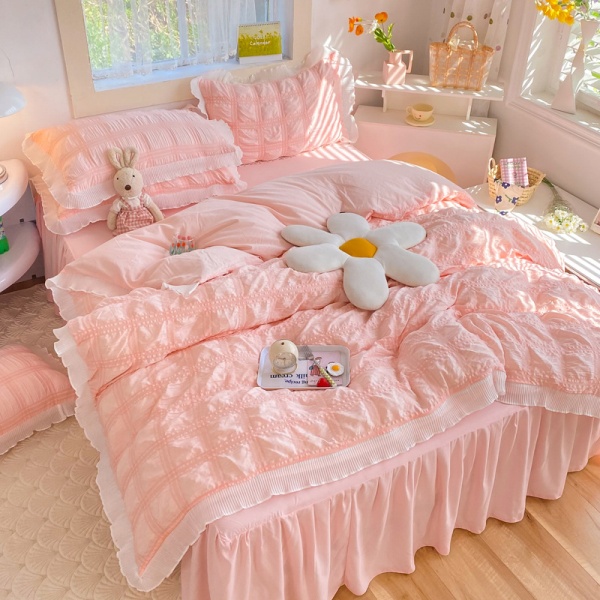 韩系ins风纯色水洗棉泡泡纱四件套少女心床单被套学生宿舍三件套