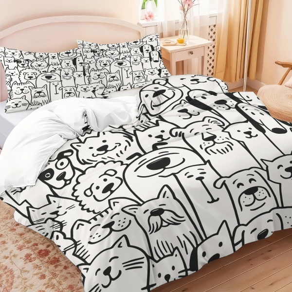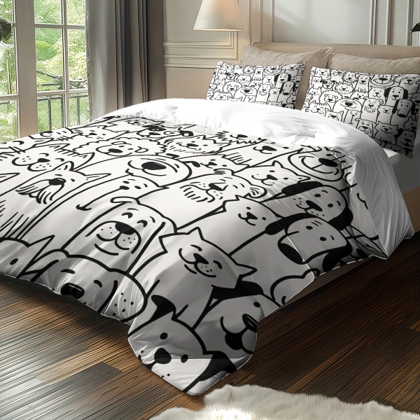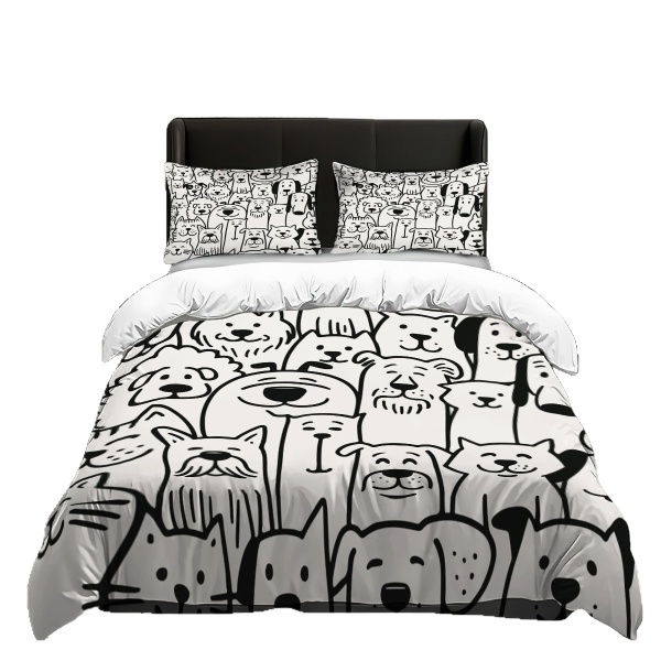 外贸被套定制定做卡通小狗枕套被罩儿童床上用品三件套跨境亚马逊